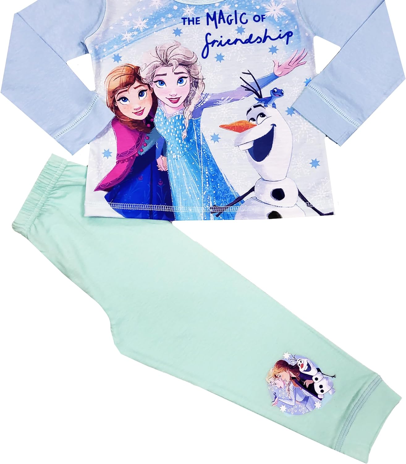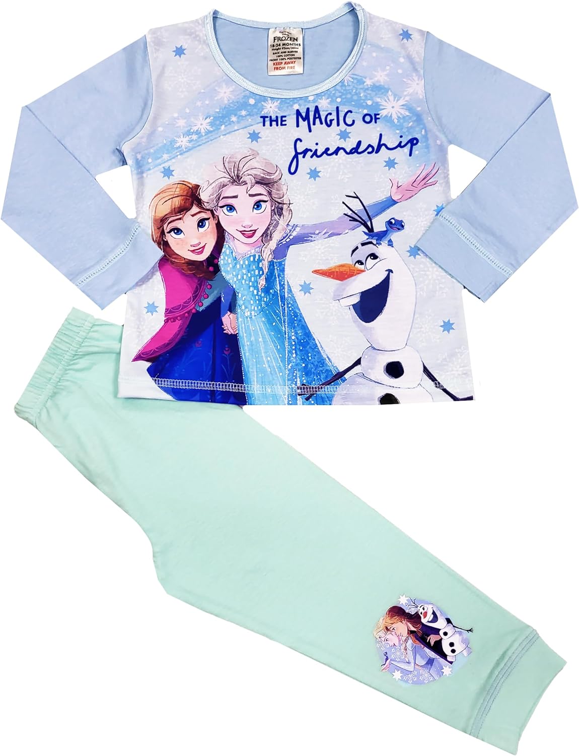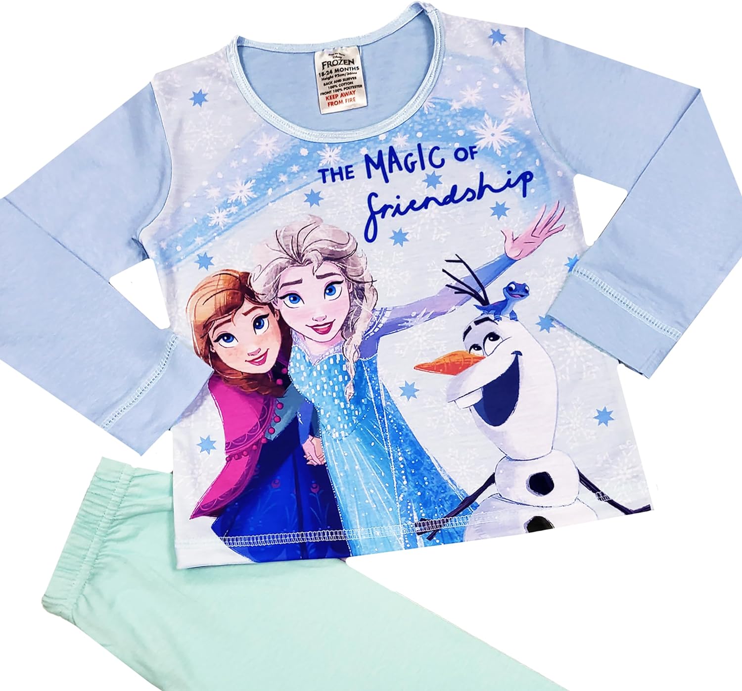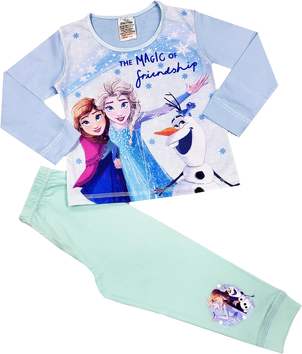 These girls Frozen pyjamas are a must have for all Disney Frozen Fans! The girls character Frozen pjs come with a lovely long sleeved top, and fabulous images of Frozen characters, including Elsa, Anna, Olaf & Kristoff to the front. The Frozen pyjamas come with elasticated waist, contrasting bottoms. These childrens Frozen pyjamas are perfect for nightwear, lounging, sleepovers, birthday, Christmas or gifts! Sizes: 18-24 Months, 2-3 Years 3-4 Years, 4-5 Years.