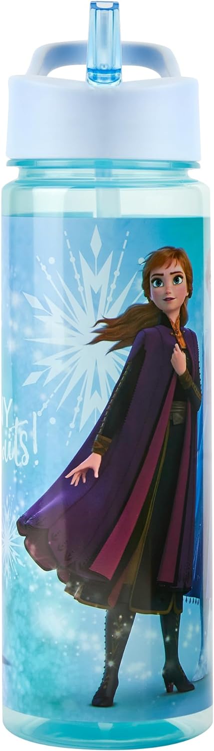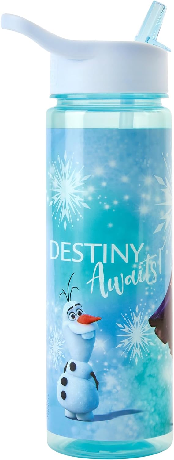 Disney Frozen Sparkle Water Bottle Flip Up Straw 600ml – Official Merchandise Kids Reusable Non Spill – BPA Free – Recyclable Plastic – Ideal For School Nursery Sports Picnic