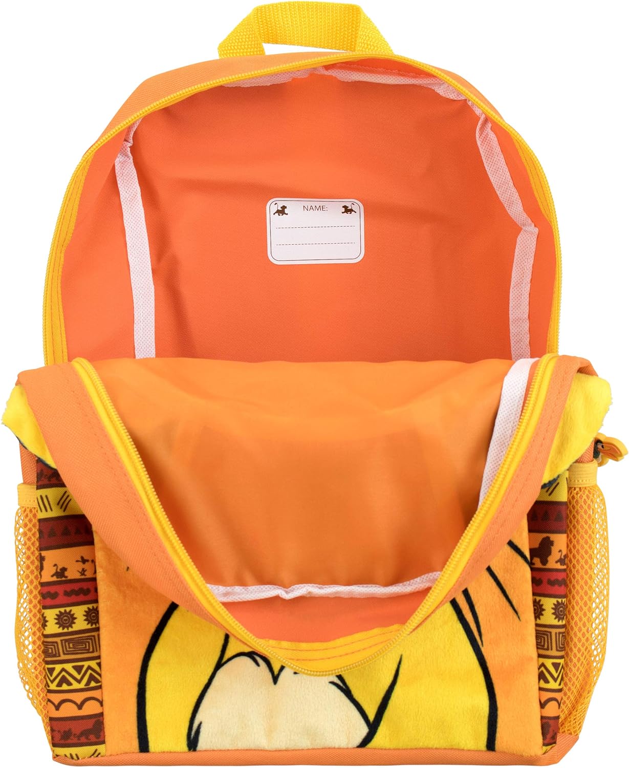 - Complete with a rubberised zip pull featuring Simba’s reliant advisor Zazu and yellow mesh side pockets, this awesome backpack is sure to be the main event, like no King was before!