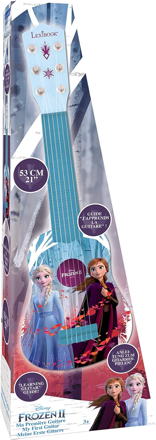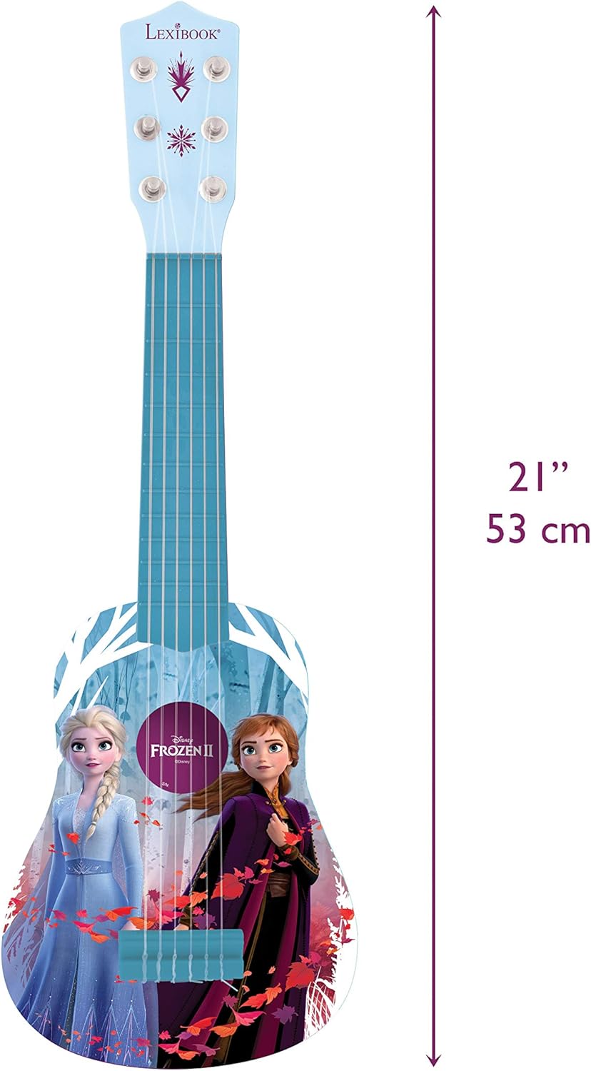 This small guitar is approximately 53cm (21 inches) long, especially designed for children. Thanks to its light and strong plastic, this guitar is perfect for children from 3 to 8 years old who want to discover music and who are ready to reveal their artistic talent.