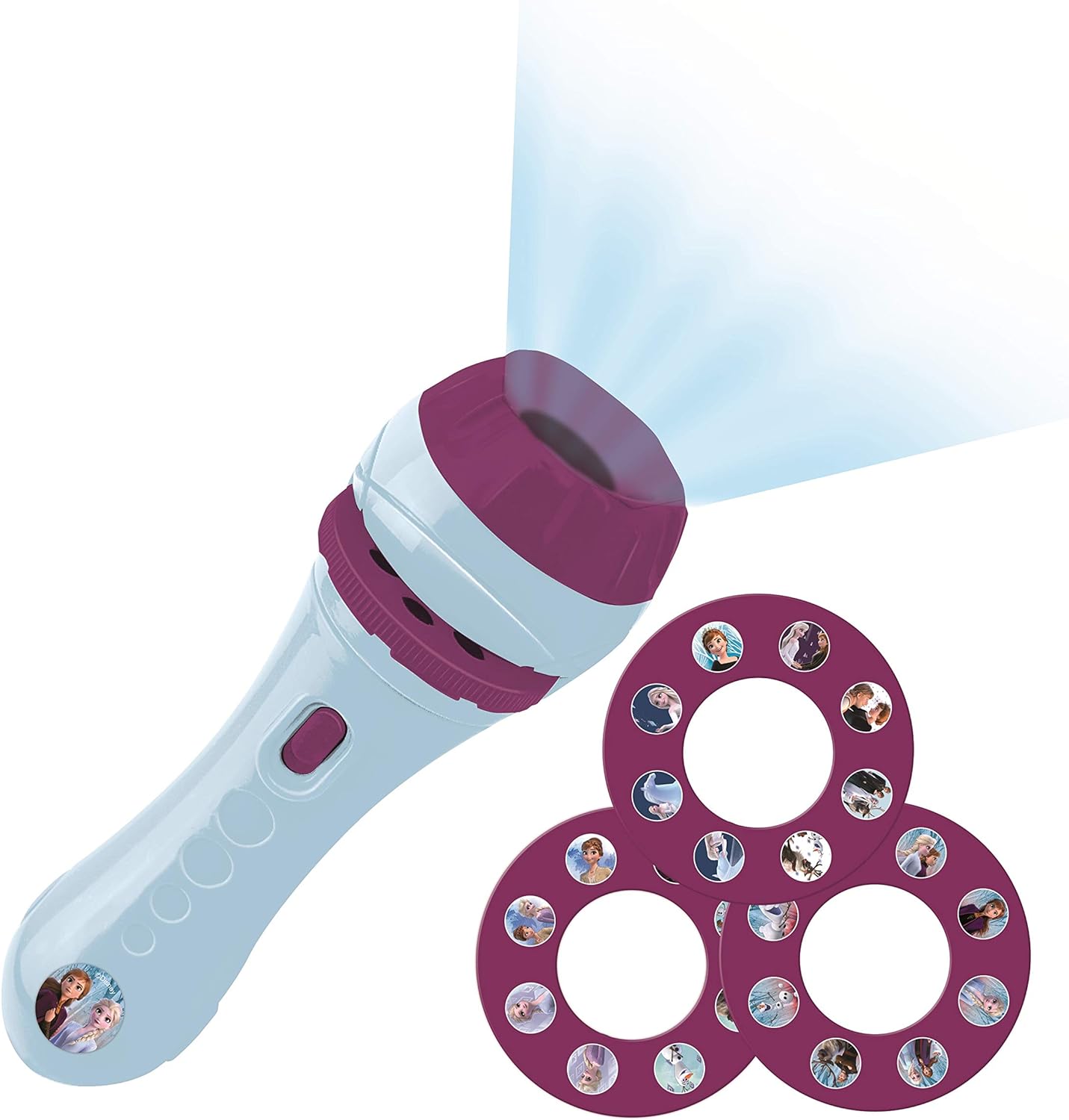 Safely created for the use of your children, this projector becomes a torchlight when the is no disk inside. Only one button to swipe and light weighted : easy to use even when they are half-asleep in the middle of the night and want to go quietly to the bathroom.
